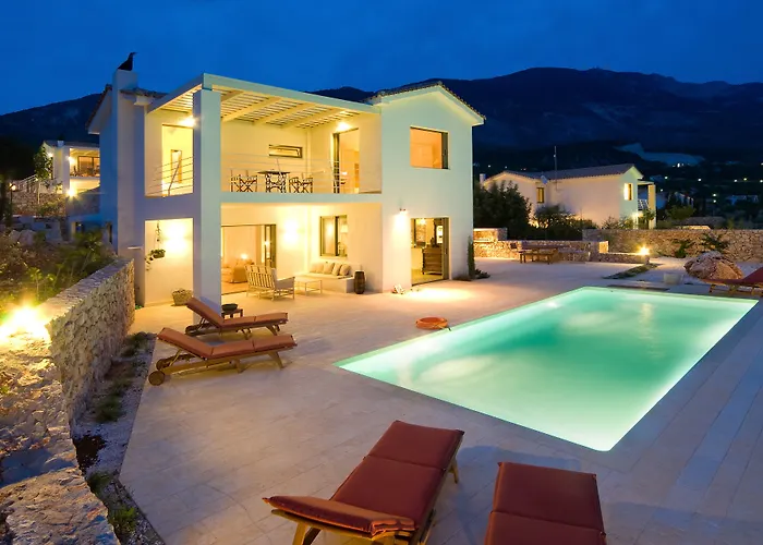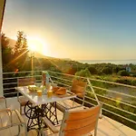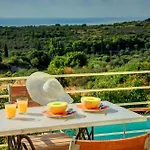 Guests can enjoy a seaside sea view from a terrace at Ideales Resort Mousata villa, nearly a 10-minute drive from the Lourdas Beach.
